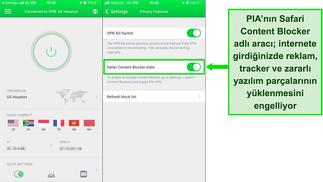 3. Private Internet Access (PIA) – Safari İçerik Engelleyici, iOS’ta İnternete Girdiğinizde Reklam ve Tracker’ların Yüklenmesini Önlüyor